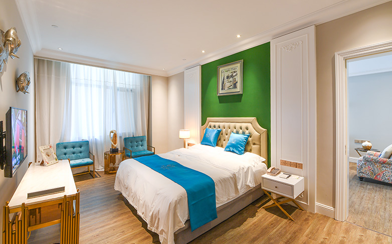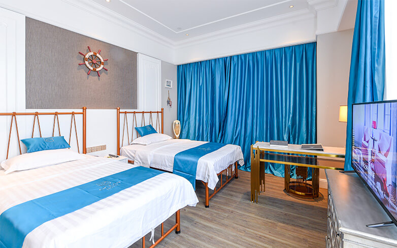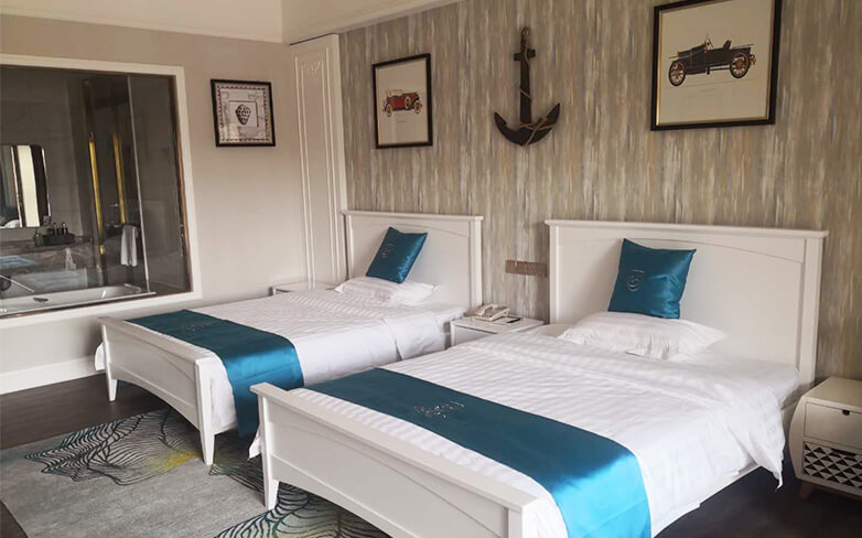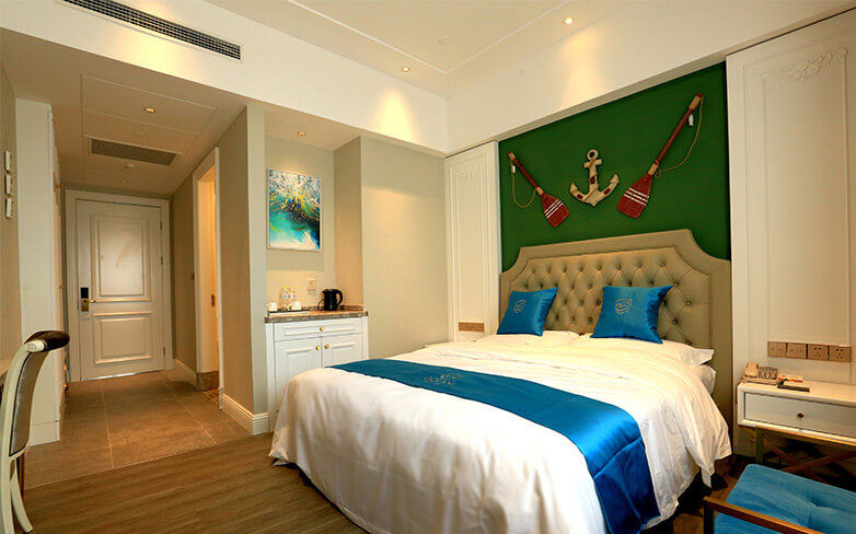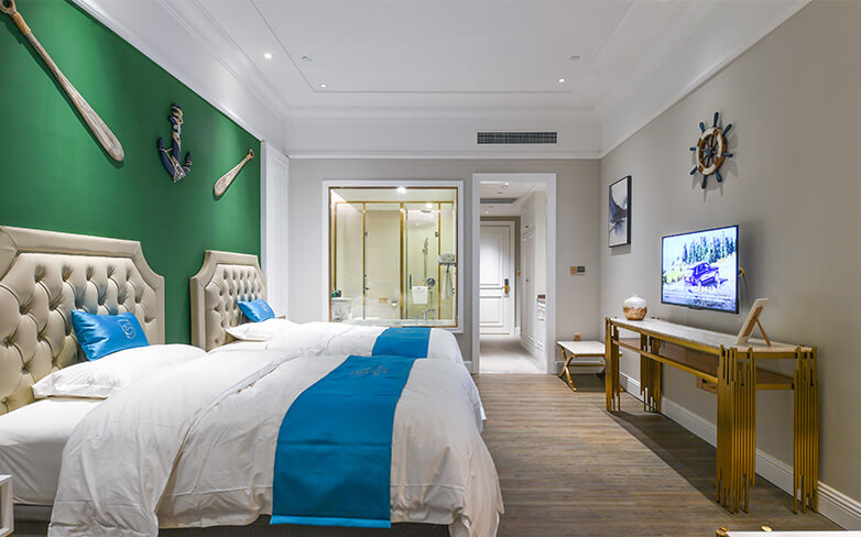 酒店客房以地中海风格为主,酒店配有爱琴海千人多功能厅、自助餐厅以及主题包厢。爱琴海多功能厅是胶东半岛唯一一座采用欧洲剧院式结构的多功能大厅,可同时容纳1000人,是举办企业年会、新品发布、商务论坛和私人宴会等高端大型活动的理想选择。