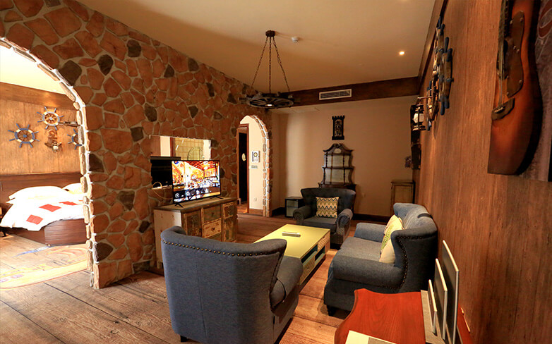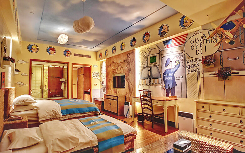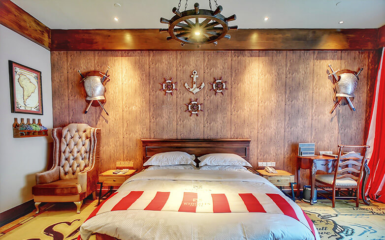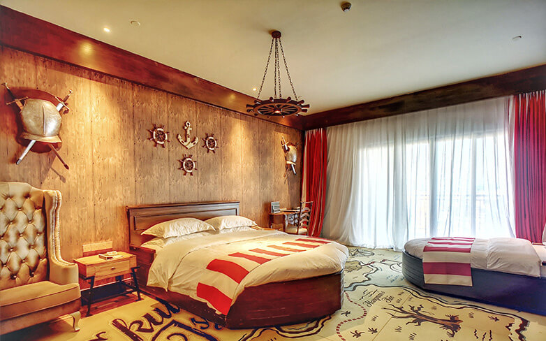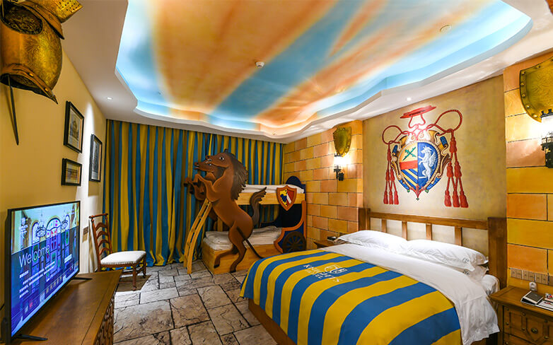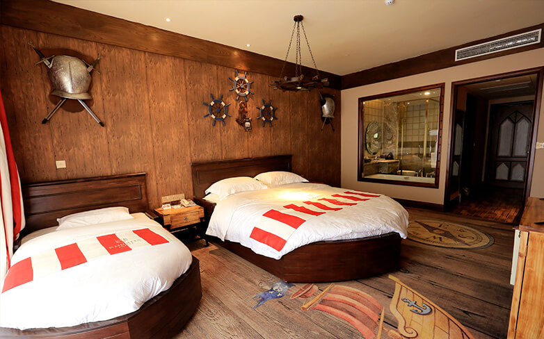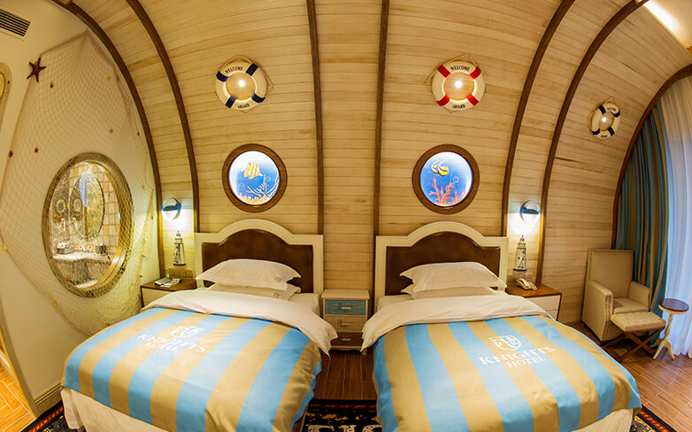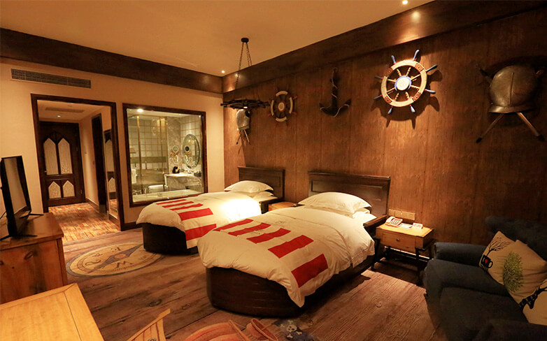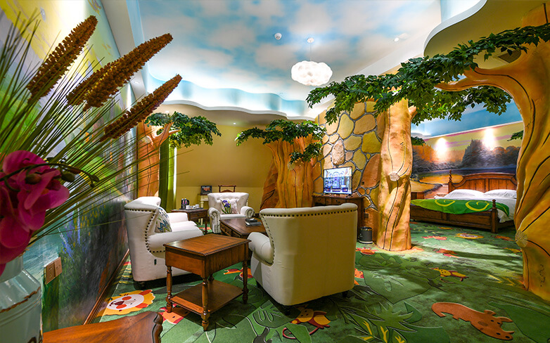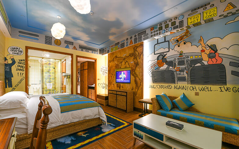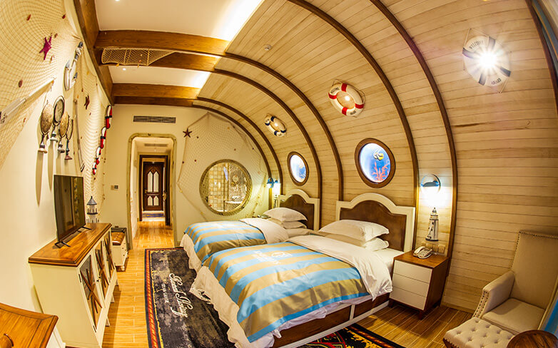酒店客房充满童话气质,打造置身梦境般的入住体验,拥有森林树屋、骑士屋、水手屋、飞行屋四大主题房,房间设计新颖童趣,装饰氛围极具童真与野趣,充满了脑洞大开的奇思妙想。非凡的创意设计将房间打造成童话仙境,使梦境中的美好落入现实,适合所有心中有梦的大儿童和小朋友,留驻小朋友的童真与完美记忆,唤醒成年人心底的天真烂漫,是家庭出行、亲子度假的最佳选择。