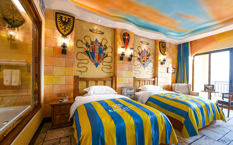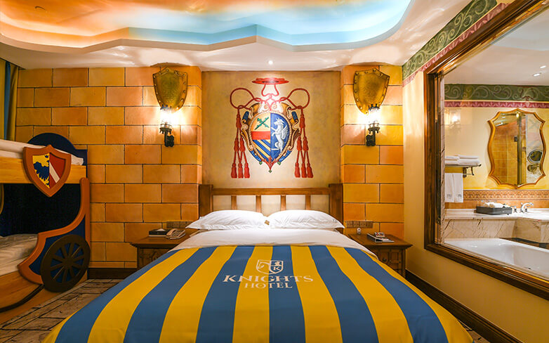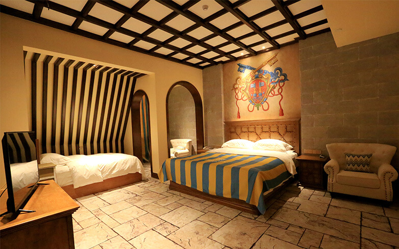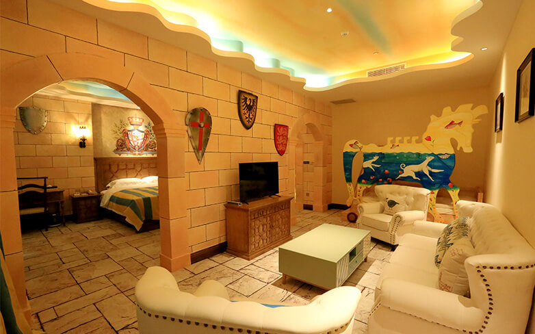 酒店配套有古罗马艺术养生温泉、骑士主题餐厅、大堂吧、宴会厅、SPA&KTV、商务中心、殿堂式会议室、嵌入式主题乐园、骑士俱乐部、商业街等功能分区。中国独一无二的酒店嵌入式主题乐园采用蒸汽朋克风格,充满了魔幻与科技的碰撞,激发孩子们的灵感,丰富孩子的想象力和创造力。酒店常年举办丰富多彩的亲子活动:如打卡“英勇小骑士”或“美丽小公主”、专属视频照片订制、餐桌礼仪培训、儿童特长培养、幼儿正面管教家长课堂等,让家长和孩子们收获快乐时光的同时,一起幸福成长。